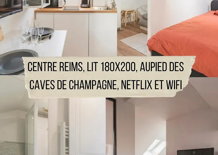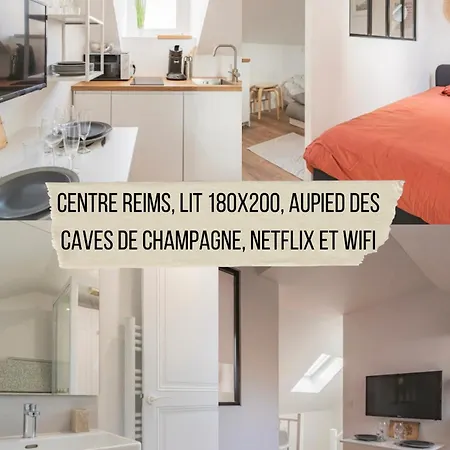 都市の景色を見渡すベッドル-ム1室のCelian,Centre Reims Pour 4 Persアパ-トメントは,ランスのサントル・エルロンから徒歩で19分です.